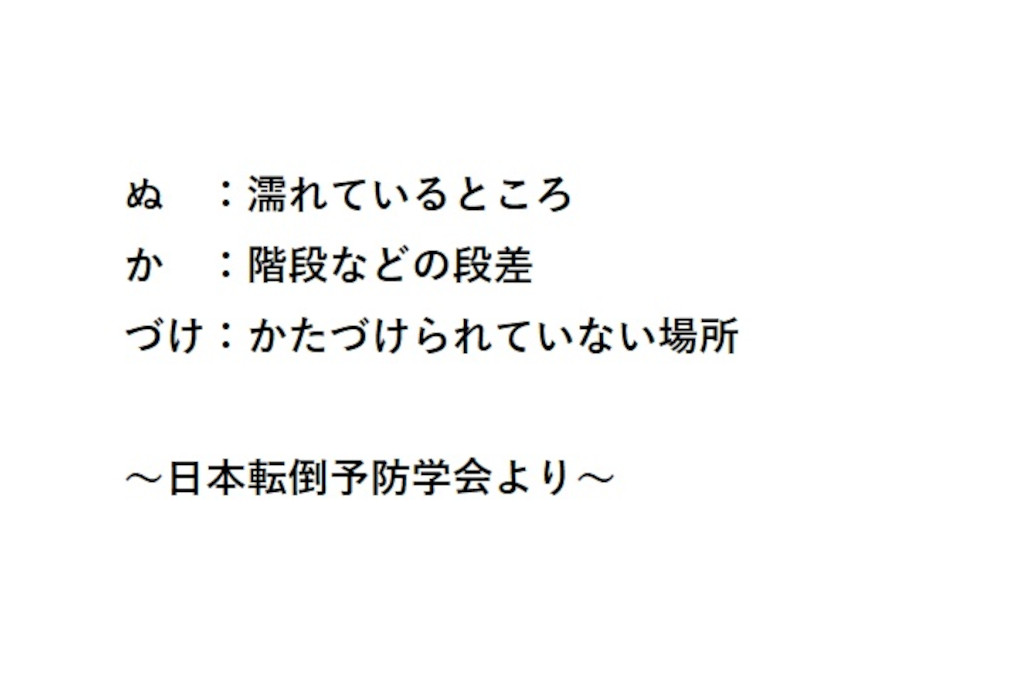 転倒の原因になりやすい「ぬかづけ」ですが、対策することで転倒リスクを軽減できます。