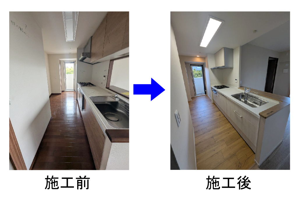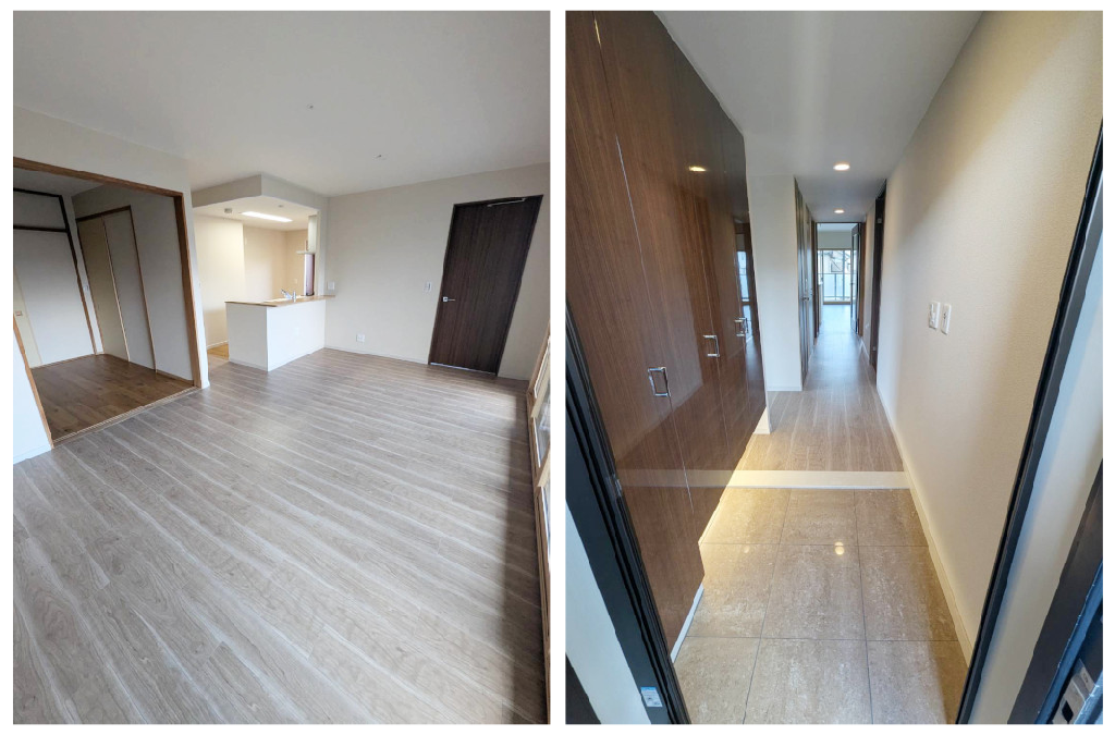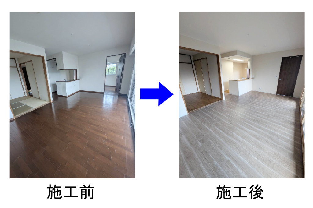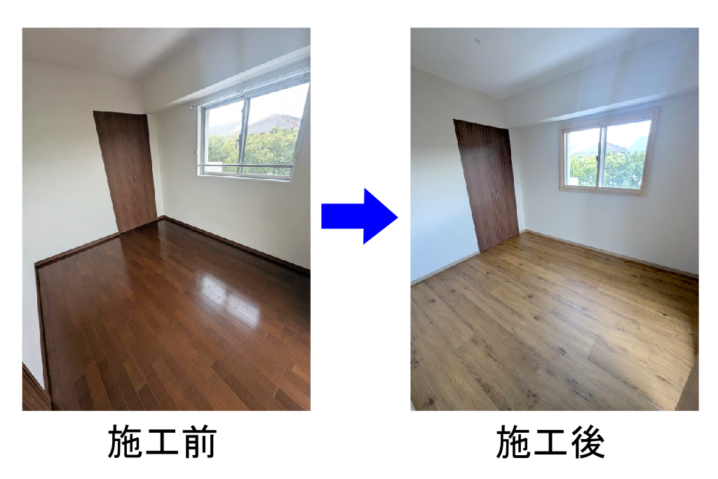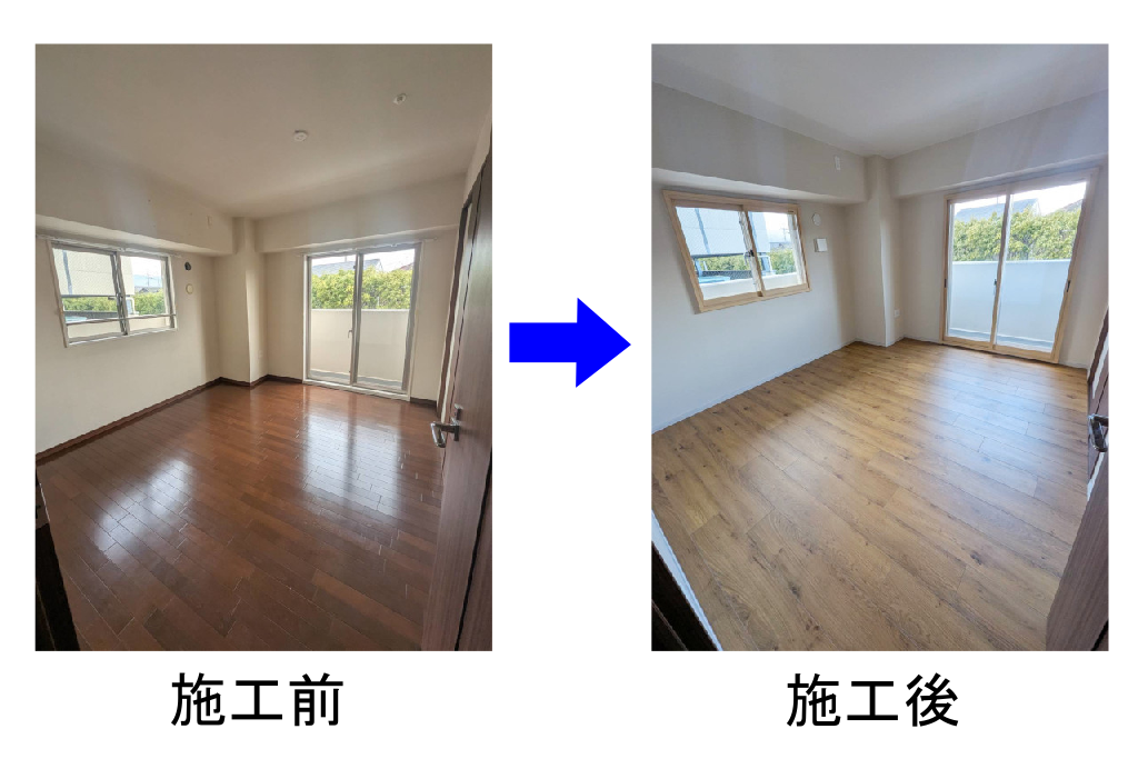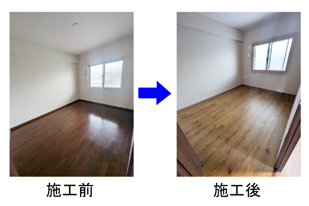 壁紙とフロアをリフォームしたことで、お部屋の雰囲気が「新築の部屋」のようにスッキリとした印象になりました。
