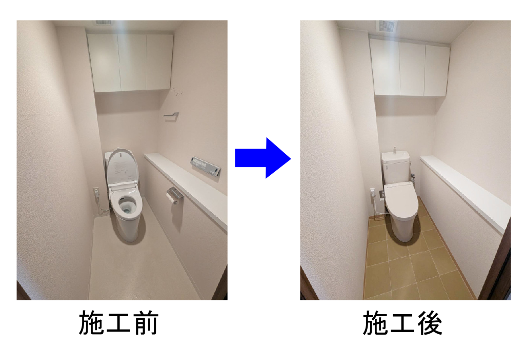 トイレもリフォームを行いましたが、元から傷みが少なったたので、気にされていた床部分のみ行いました。